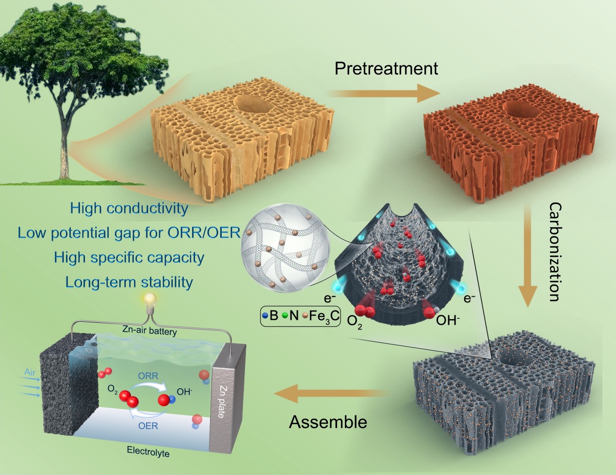 In situ Growth of B, N-Doped Fe3C-Encapsulated Carbon Nanotubes on Wood-Derived Carbon for High-Performance Zn-Air Battery Electrocatalysts.